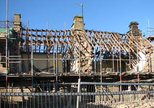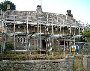 A new owner found that the front wall was leaning outwards and all renovation was stopped and structural scaffolding put in place to support it. After very prolonged discussions with the various authorities as it is a listed building, permission was given to re-build the front wall. The front wall was carefully dismantled and rebuilt so the house’s appearance was unchanged.